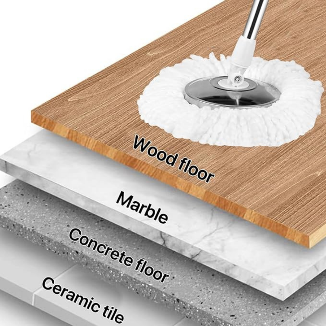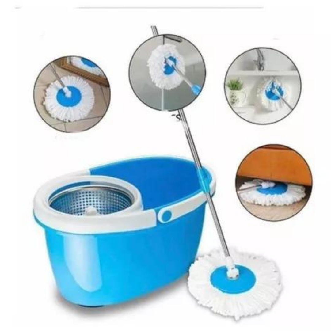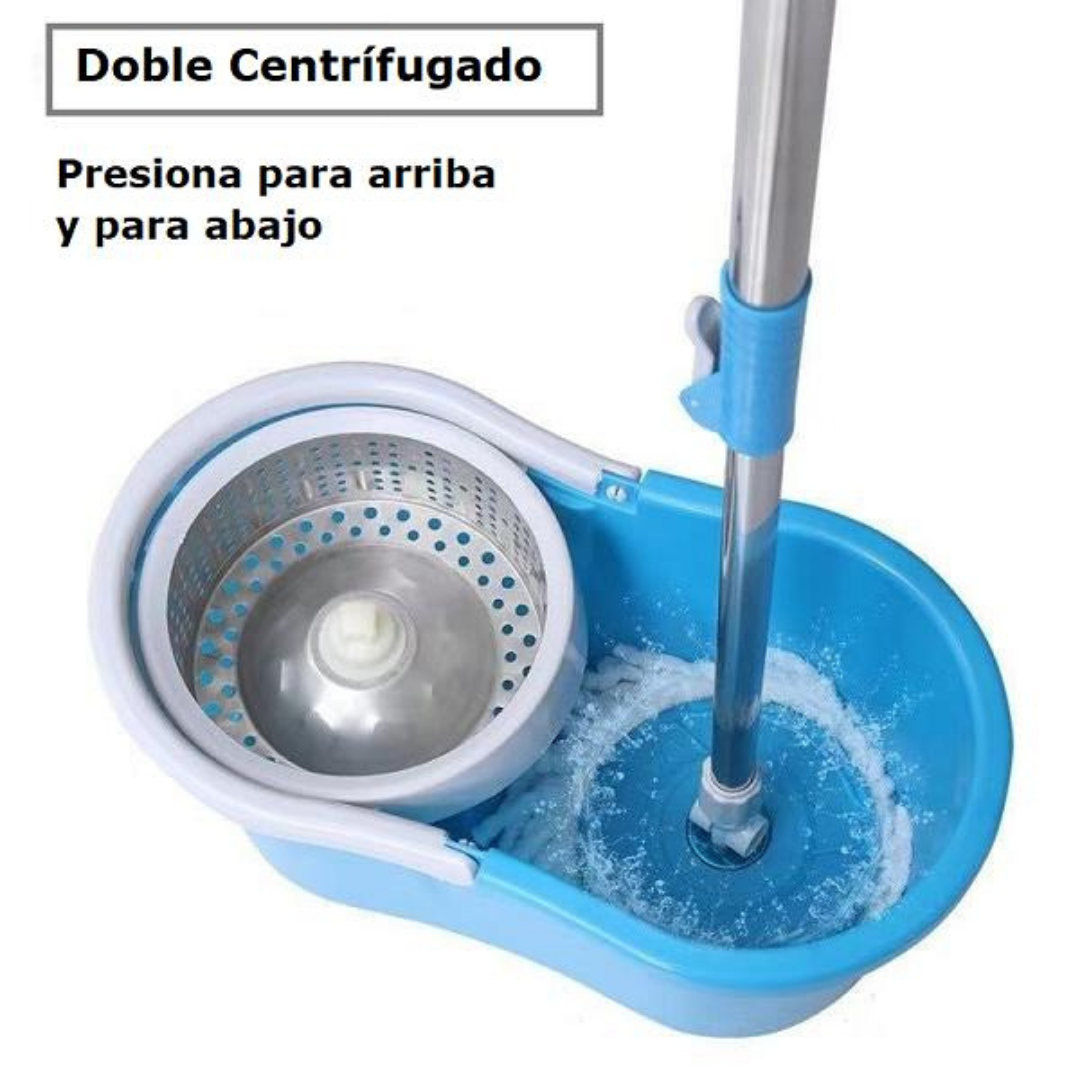 Con el Trapeador 360° Giratorio, olvida las molestias de los trapeadores tradicionales, con nuestro sistema de centrifugado de acero inoxidable seca la mopa en giros, mientras que la microfibra ultra absorbente elimina la suciedad y la humedad sin dejar rastro.