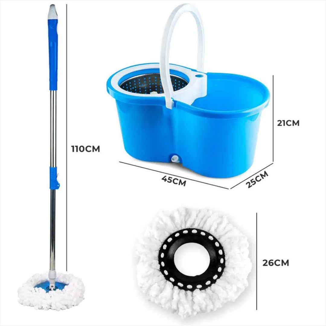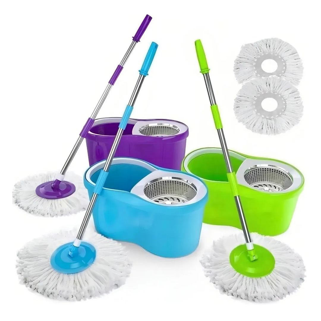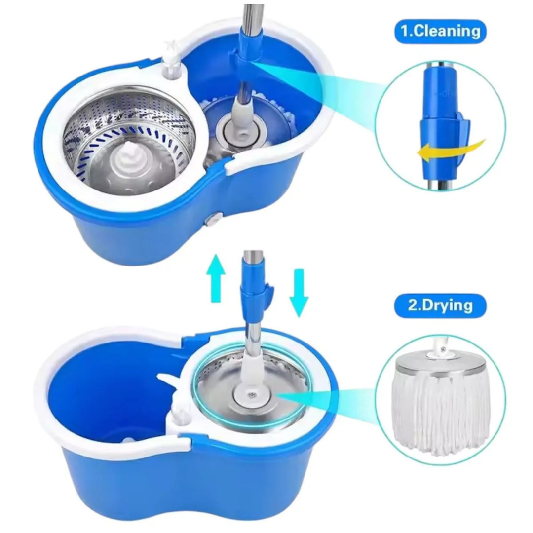 Con el Trapeador 360° Giratorio, olvida las molestias de los trapeadores tradicionales, con nuestro sistema de centrifugado de acero inoxidable seca la mopa en giros, mientras que la microfibra ultra absorbente elimina la suciedad y la humedad sin dejar rastro.