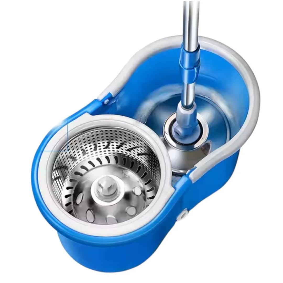 Sistema giratorio 360°: El trapero rota dentro del cubo para enjuagarse y escurrirse sin esfuerzo, manteniendo tus manos protegidas y secas.